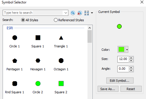 - In your Map Document, double click on the point symbol to open symbol selector window.