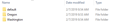 - Within the MobileMap folder create one subfolder for each project or 'map cache'. Some users create new map cache folders for each geographic area where they work. Other users create different map cache folders for different types of work, based on the base map data they like to have displayed when performing that work. Still others use a single map cache for all of their work. The strategy will depend on the volume of data that you need, the number of distinct geographic areas where you work, the degree to which larger work areas are separated into regions or other groups, etc. For this example we will create two map caches, one for Washington and the other for Oregon.