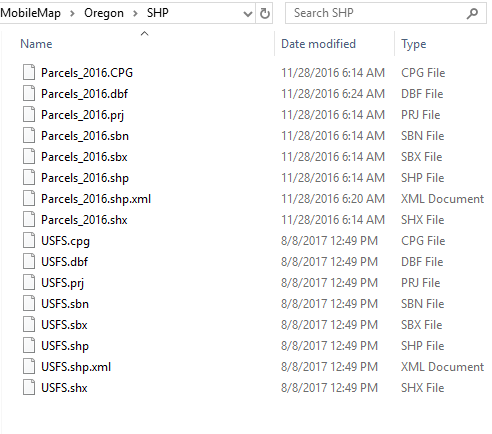 - Below are examples of a typical file structure on an SD card for MobileMap. The example below has two map Caches (OR and WA), each with 2 TPKs, and 2 Shapefiles.