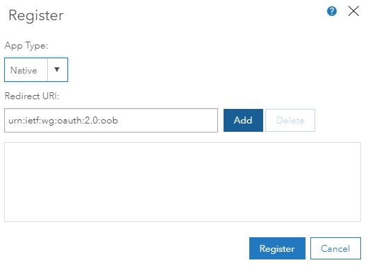 - On the Register form select 'Native' for App Type