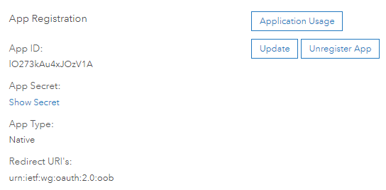 - The item will now display the App ID. Copy this and use it as the 'Client ID' in the MobileMap authentication Settings below.